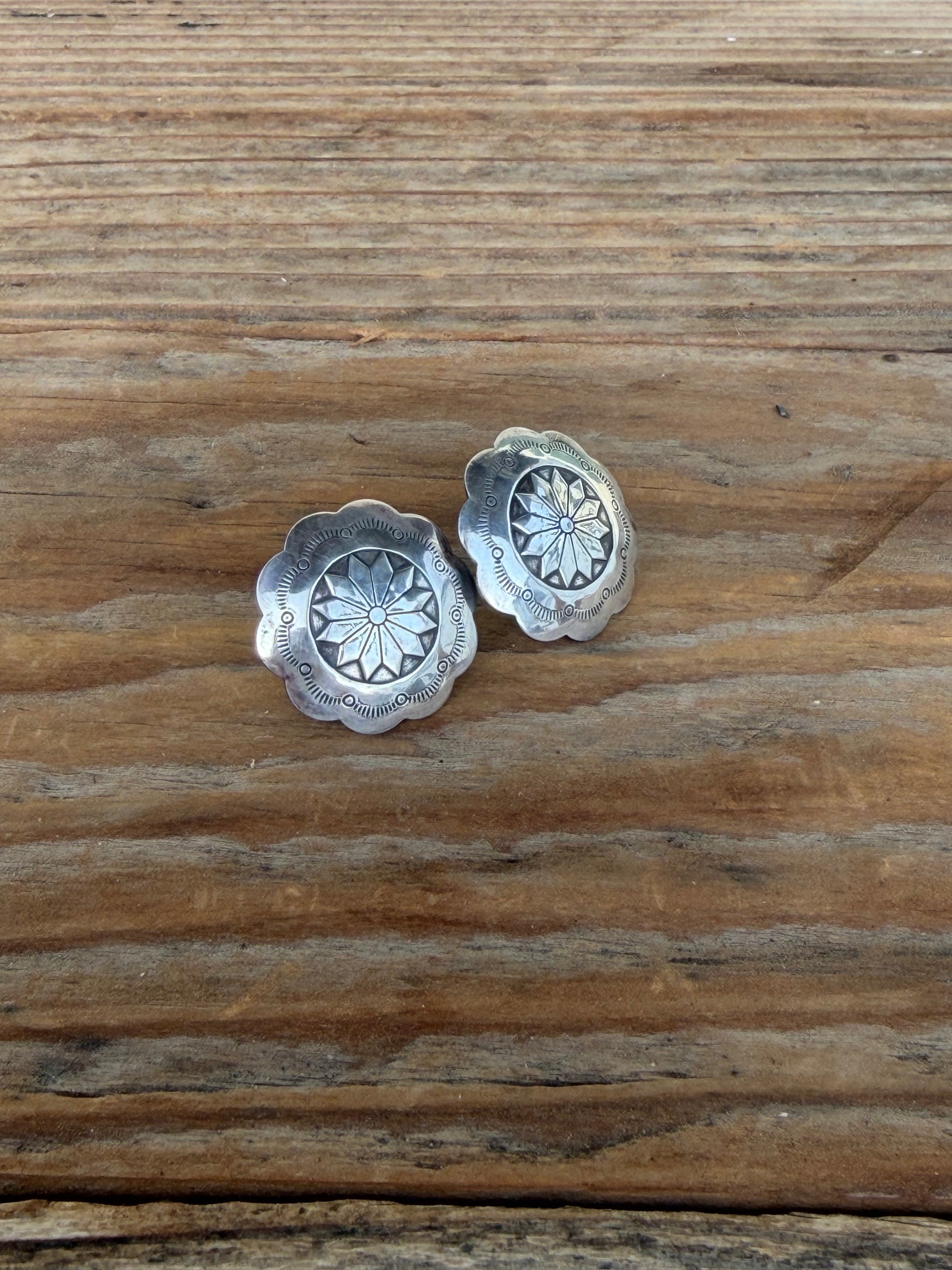 Sterling silver stamped concho earrings
